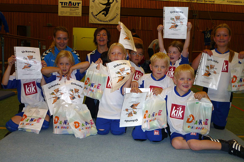 Da der Spaß bei den jüngsten Handballern im Vordergrund steht, wurde keine Wertung vorgenommen – alle rund 60 Kinder (Jungs und Mädels) waren Gewinner und erhielten, bei der Siegerehrung am Ende des Turniers eine kleine Überraschungstüte.