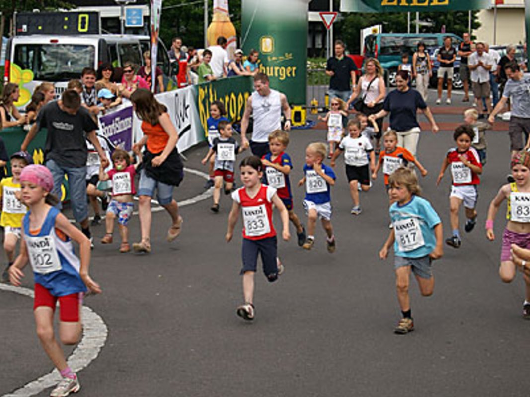 Den farbenprächtigen Auftakt bildeten dabei die Kinder im Alter von 3 bis 11 Jahren am Start der 500 und 1.000 Meter Läufe. Angefeuert von zahlreichen Eltern, Omis und Opis absolvierten die kleinsten Stadtläufer ihre neuen Wendepunktstrecken auf dem Kylltal Radweg im Stadtzentrum. Während bei den 500 Meter Läufern keine Zeiten gestoppt wurden, siegte bei den ?Großen? Laurenz Eltze vom gastgebenden SV Gerolstein. Schnellstes Mädchen im Feld war Malin Britz vom TV Bitburg.
