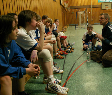 Eine tolle ?gemischte? Truppe, die da im Laufe der Saison unter der Leitung von Trainer Hansi Helle zusammen gewachsen ist. Gemeinsam durch Dick und Dünn und Höhen und Tiefen manövrierte sich das zu Beginn der Saison neu formierte Team. Auch wenn der sportliche Erfolg entsprechend dem Tabellenplatz nicht messbar scheint, haben sich die Jungs und Mädchen spielerisch sowohl in der Defensive als auch in der Offensive enorm weiterentwickelt. Nach dem spannenden Auswärtsspiel in Igel, in dem sich die Gerolsteiner Gäste noch knapp mit 22:20 geschlagen geben mussten, siegte die Truppe im darauffolgenden Heimspiel gegen die Gäste aus St. Matthias Konz in beeindruckender Manier mit Spielwitz und schon überzeugendem handballerischen Können mit 31:24. Während die Jungs (Jahrgänge 1995/1996) zusammen mit Hansi Helle in die zweite D-Jugend Saison starten, wandert das Gro der Mädels altersbedingt ?nach oben? in die weibl. C-Jugend bzw. in die neue weibl. D-Jugend um dort auf Torejagd zu gehen. Auch wenn schon Abschied bei einer gemeinsamen ?Kabinenpizza? gefeiert wurde, wird sich die Truppe nicht aus den Augen verlieren. Schließlich gilt es ja immer noch die ?Großen? gemeinsam von der Tribüne aus anzufeuern!