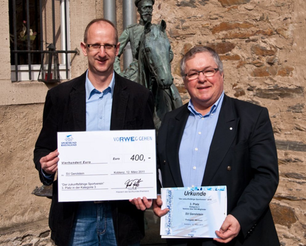Die erarbeiteten Konzepte und die bis zum Ende des letzten Jahres umgesetzten Maßnahmen wurden in einer Bewerbung für den Wettbewerb „Der zukunftsfähige Sportverein 2010“ fixiert. Die erneute Auszeichnung für den SV Gerolstein zeigt, dass die behandelten Themenfelder, insbesondere im Bereich der Jugendarbeit, die Jury überzeugt hat. Der mit der Auszeichnung verbundene Geldpreis wird der neuen Jugendabteilung, die im nächsten Monat offiziell gegründet werden soll, als „Startkapital“ zur Verfügung gestellt.