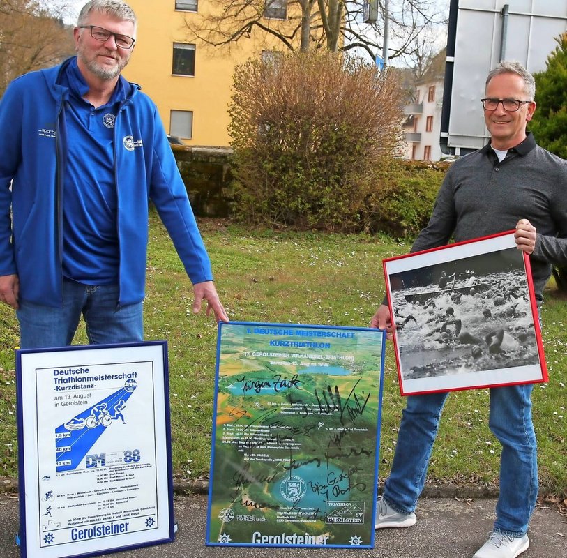 Nicht nur für die ganze Region, sondern ganz besonders für die Triathlon Abteilung und unseren Verein war das ein ganz besonderes Erlebnis. Auf dem Foto zu sehen sind zwei Gerolsteiner Urgesteine, die einen großen Anteil an der Triathlon-Geschichte in Gerolstein haben. Peter Mertes (links) und Klaus Klaeren hätten mit Ihren Geschichten sicher eine ganze Ausgabe des TV füllen können. Danke an Holger Teusch für die ausgezeichnete Berichterstattung. „Eisenmänner – und Frauen“ sind auch weiterhin in unserer Triathlon-Abteilung aktiv