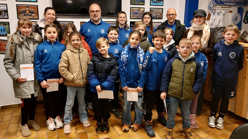 Bereits zum zweiten Mal nahmen die Handball-Minis mit ihren Trainern Katharina Hermes und Patrick Gottschall sowie Geschwisterkindern und Eltern am Sportabzeichenwettbewerb teil.
